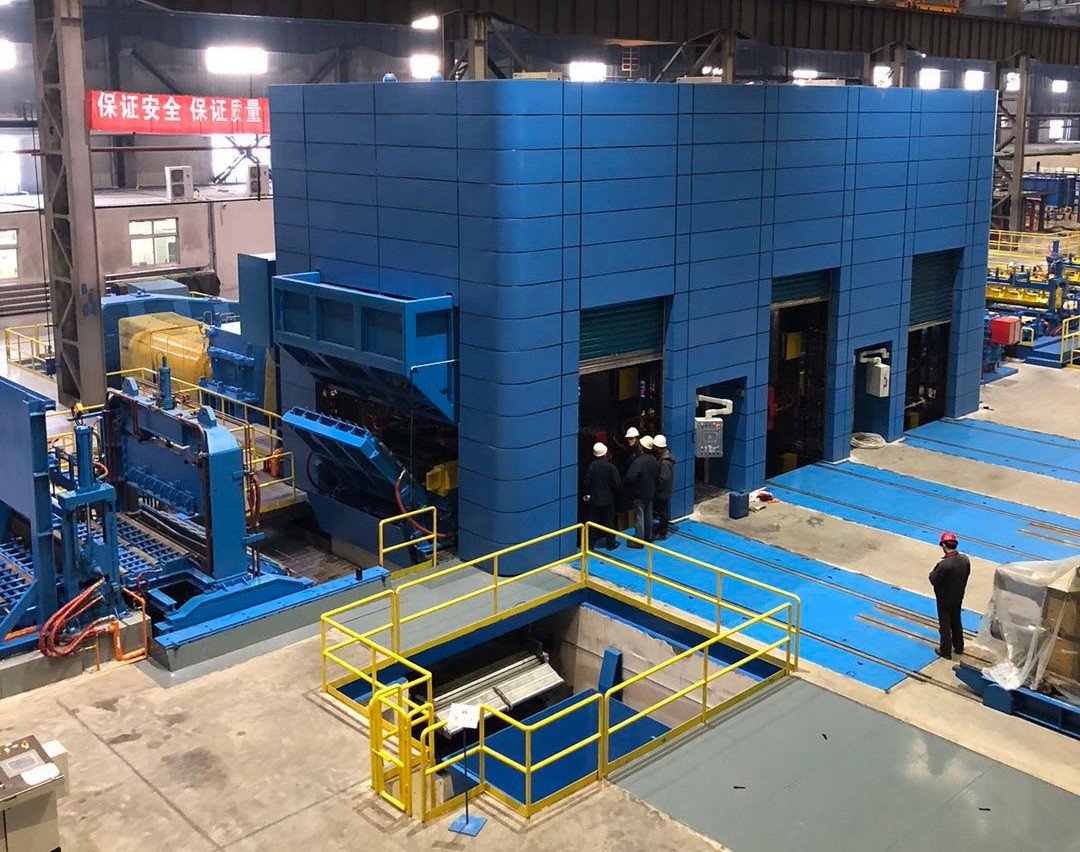 鎮(zhèn)江市宏業(yè)科技有限公司為內(nèi)蒙古聯(lián)晟新能源材料有限公司設(shè)計(jì)制造的2300mm鋁板兩機(jī)架冷精軋機(jī)正在做發(fā)貨前的裝配測(cè)試工作。